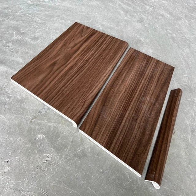 - Mặt bậc: Lớp nhựa phủ vân gỗ với khả năng chống trầy xước và chống thấm.
