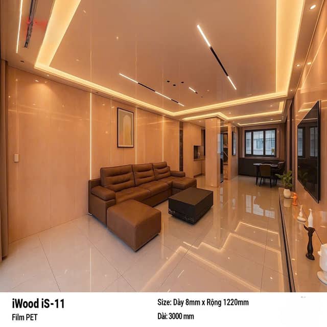 - Thẩm mỹ cao: Bề mặt vân gỗ, vân đá hoặc trơn nhẵn hiện đại, dễ dàng phối hợp với nhiều phong cách thiết kế.