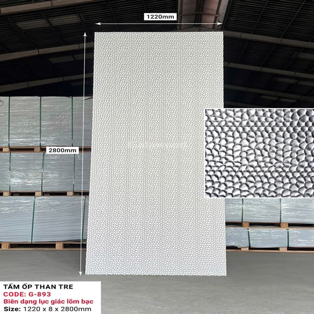 THÔNG SỐ KĨ THUẬT - TẤM ỐP THAN TRE SỢI BIẾN DẠNG KIM LOẠI- KOS 8MM