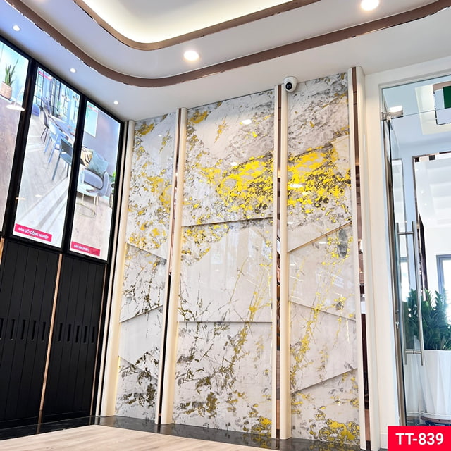 - CÔNG DỤNG CỦA SẢN PHẨM - TẤM ỐP THAN TRE SỢI PARADO VÂN ĐÁ - DÁT VÀNG PET TT839
