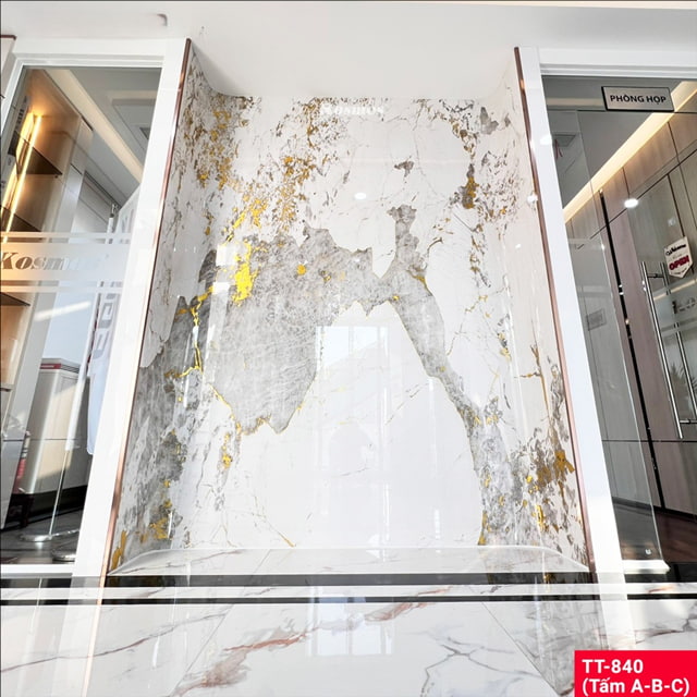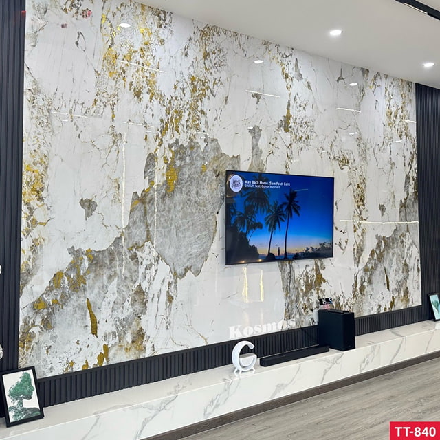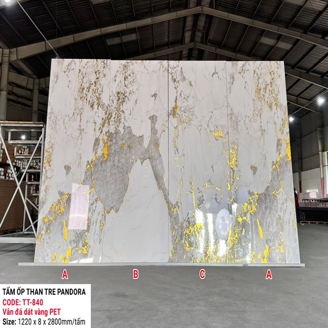 HÌNH ẢNH SẢN PHẨM - TẤM ỐP THAN TRE SỢI SPARADO VÂN ĐÁ - DÁT VÀNG PET TT840