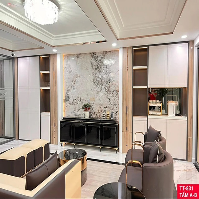 - Ốp quầy lễ tân, showroom, khách sạn - Giúp không gian sang trọng và chuyên nghiệp hơn.