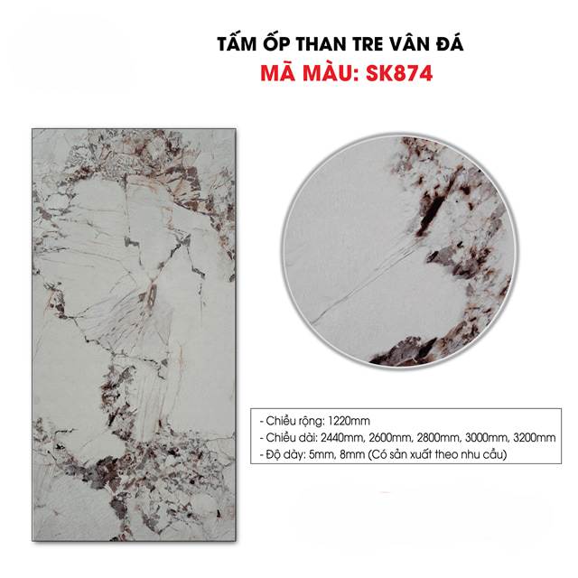 - THÔNG SỐ KĨ THUẬT - TẤM ỐP THAN TRE SỢI SK VÂN ĐÁ ĐẶC BIỆT 5mm- 8mm TẠI HCM