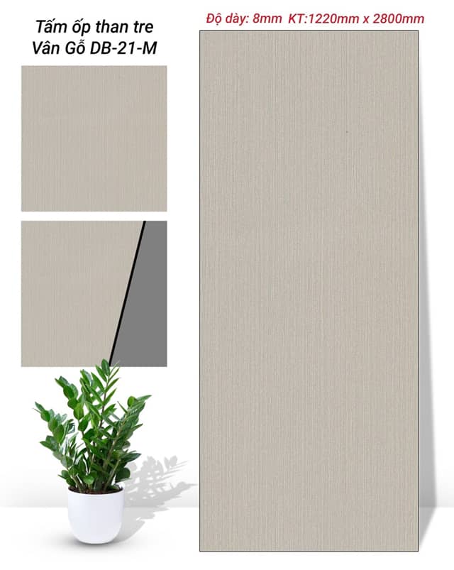 Tấm ốp than tre vân gỗ 8mm là vật liệu trang trí nội thất cao cấp, được sản xuất từ cốt than tre ép tự nhiên kết hợp bề mặt da mịn sang trọng. Sản phẩm nổi bật với khả năng chống ẩm, chống cong vênh, bề mặt mịn lì tinh tế, mang lại cảm giác ấm áp và hiện đại cho không gian sống.
