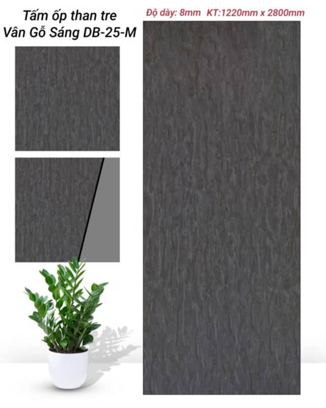 Tấm ốp than tre vân gỗ 8mm là vật liệu trang trí nội thất cao cấp, được sản xuất từ cốt than tre ép tự nhiên kết hợp bề mặt da mịn sang trọng. Sản phẩm nổi bật với khả năng chống ẩm, chống cong vênh, bề mặt mịn lì tinh tế, mang lại cảm giác ấm áp và hiện đại cho không gian sống.