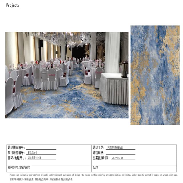 | Hình thức mua hàng: | Thảm dự án đặt hàng theo hoa văn và màu thiết kế khách hàng yêu cầu |