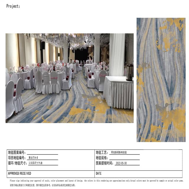 | Hình thức mua hàng: | Thảm dự án đặt hàng theo hoa văn và màu thiết kế khách hàng yêu cầu |
