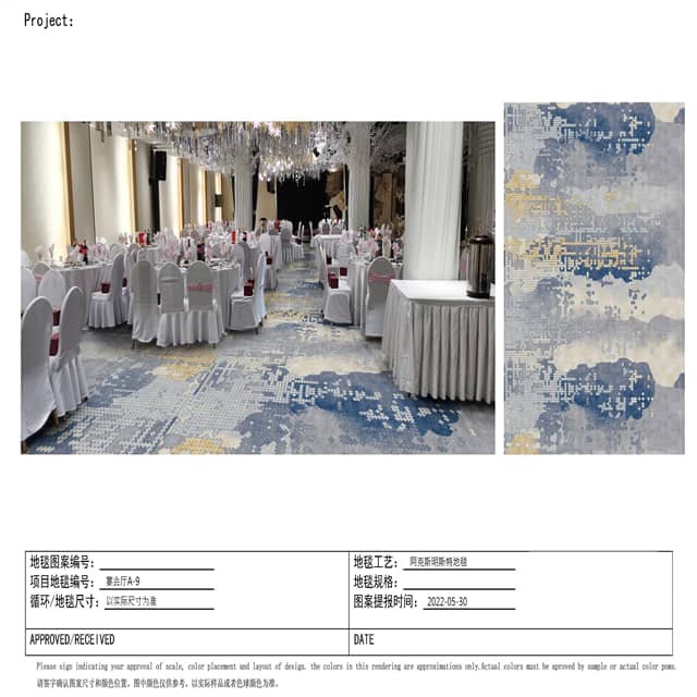| Hình thức mua hàng: | Thảm dự án đặt hàng theo hoa văn và màu thiết kế khách hàng yêu cầu |
