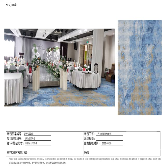 | Hình thức mua hàng: | Thảm dự án đặt hàng theo hoa văn và màu thiết kế khách hàng yêu cầu |