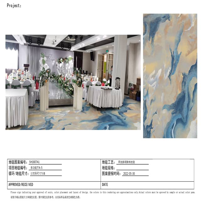 | Hình thức mua hàng: | Thảm dự án đặt hàng theo hoa văn và màu thiết kế khách hàng yêu cầu |