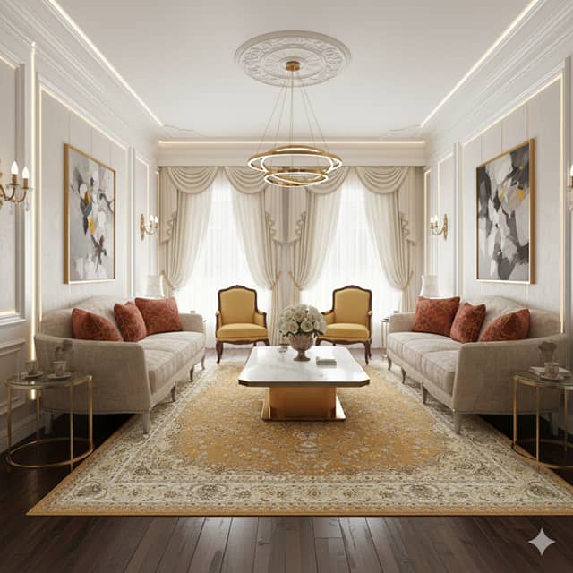 Thảm dệt phòng khách cổ điển là dòng thảm mang phong cách sang trọng, tinh tế, được lấy cảm hứng từ nghệ thuật châu Âu với họa tiết đối xứng, đường nét mềm mại và gam màu trầm ấm. Đây là sản phẩm lý tưởng cho những không gian cần sự đẳng cấp, lịch lãm như biệt thự, nhà phố, khách sạn, resort cao cấp.