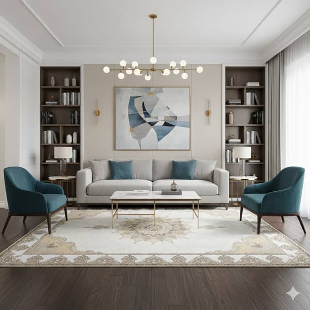 Thảm không chỉ đóng vai trò trang trí mà còn tạo điểm nhấn thẩm mỹ mạnh mẽ, giúp không gian phòng khách trở nên ấm cúng và sang trọng hơn.