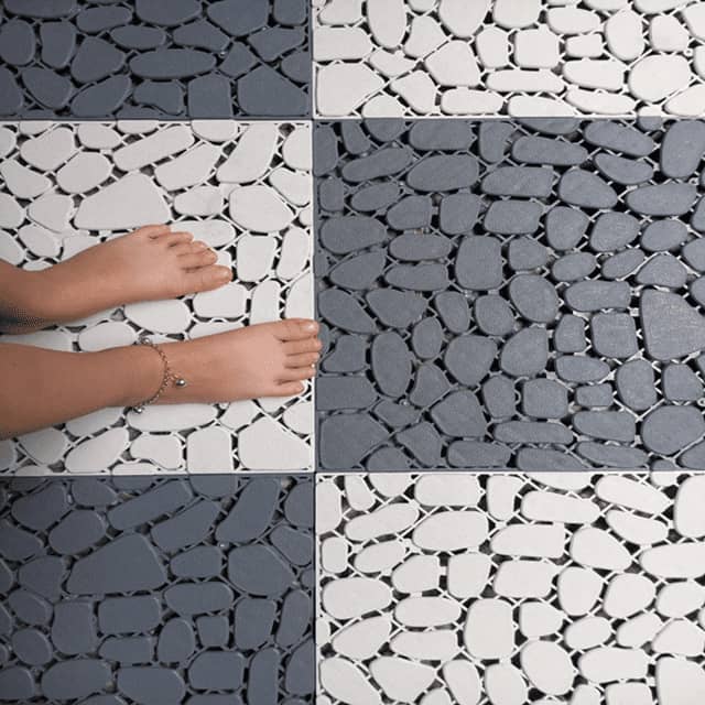Thảm tấm ghép viên sỏi chống trơn là loại thảm được thiết kế mô phỏng bề mặt các viên sỏi tự nhiên, giúp tăng độ ma sát, giảm trơn trượt hiệu quả. Thảm được ghép từ các tấm nhỏ, có thể lắp ráp linh hoạt theo diện tích sử dụng, dễ dàng tháo lắp, vệ sinh và thay thế.