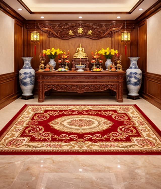 - Sử dụng tại nhà thờ họ, đền chùa - Thảm giúp tăng thêm phần linh thiêng và tôn nghiêm cho không gian tâm linh.