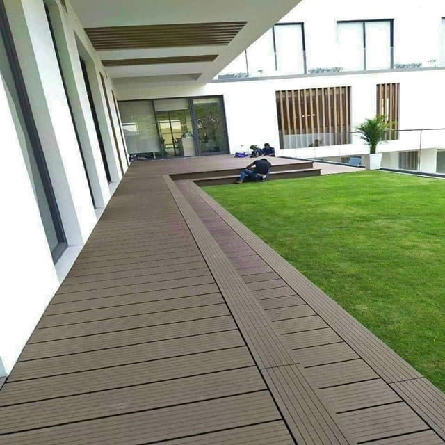 Sàn gỗ ngoài trời là loại sàn được sản xuất từ gỗ nhựa composite (WPC) – kết hợp giữa bột gỗ tự nhiên và hạt nhựa PE cao cấp, có khả năng chống chịu thời tiết, chống thấm nước và chống mối mọt tuyệt đối.Loại sàn này được thiết kế chuyên dụng để sử dụng cho các khu vực ngoài trời có độ ẩm cao, nắng nóng nhiều mà các loại sàn gỗ tự nhiên không thể đáp ứng.